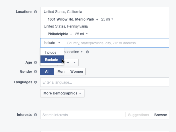 As a product design contractor for Facebook, I worked on the location targeting component. This component is used in several different ad creation flows, so the design had to be simple and compact but packed with features.